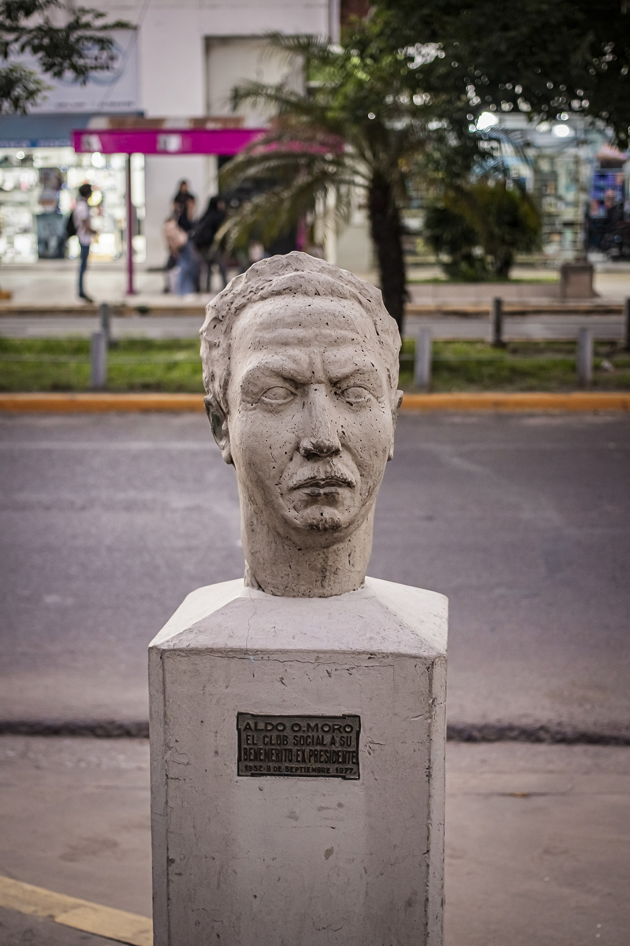 Esta escultura, titulada "Cabeza de Aldo Moro", forma parte de la colección del Museo a Cielo Abierto de Resistencia. Fue creada por Víctor Marchese de Argentina en el año 1953. La obra está realizada en Cemento. Sus dimensiones son 51.5 cm (alto) x 33.5 cm (ancho) x 41.5 cm (profundidad), con una base de 103 cm (alto) x 44 cm (ancho) x 39 cm (profundidad). Actualmente se encuentra ubicada en Av. Alberdi 283.