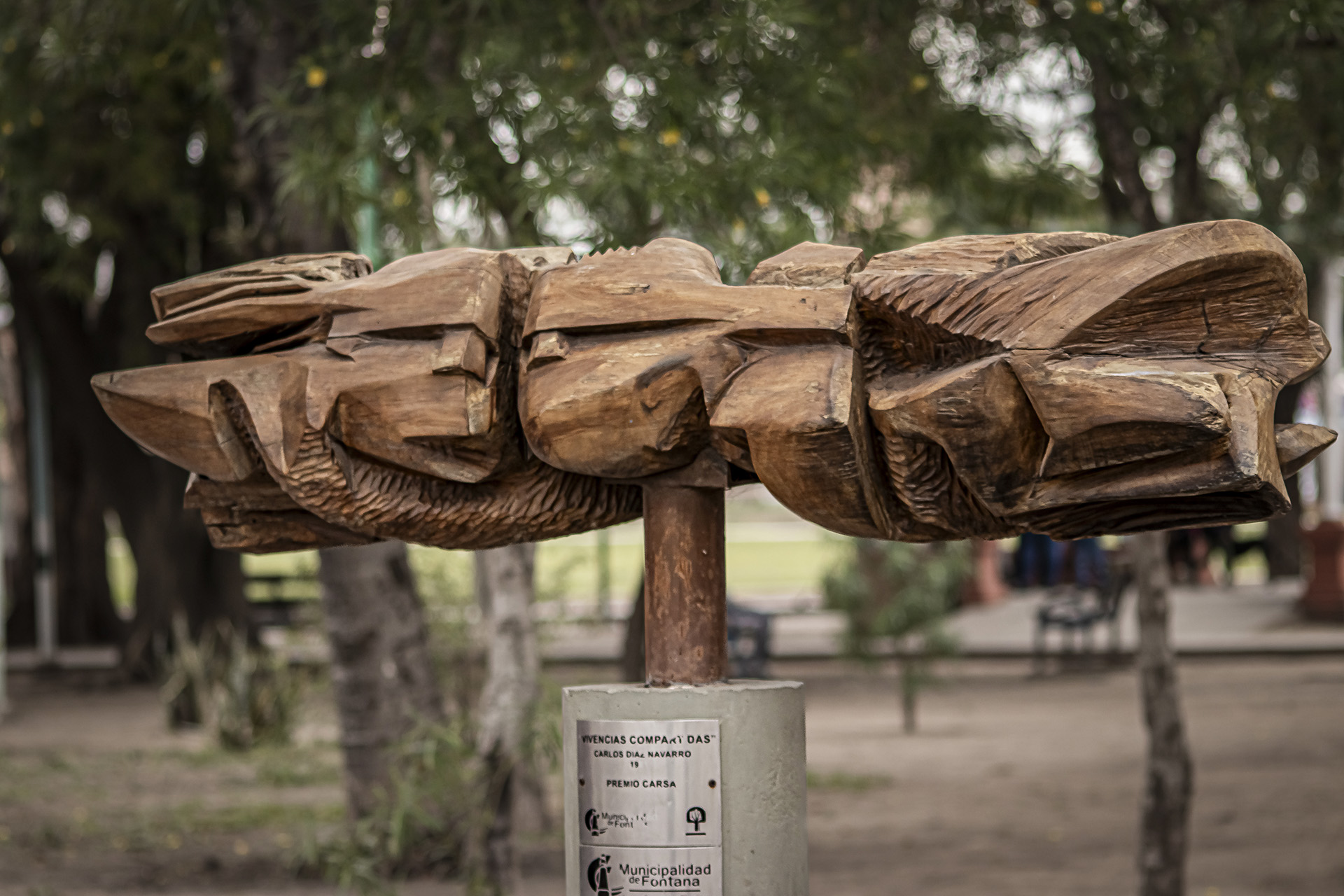 Esta escultura, titulada "Vivencias compartidas", forma parte de la colección del Museo a Cielo Abierto de Resistencia. Fue creada por Carlos Díaz Navarro de Argentina en el año 1991. La obra está realizada en Madera. Sus dimensiones son 37 cm (alto) x 154 cm (ancho) x 40 cm (profundidad). Actualmente se encuentra ubicada en Plaza Fontana, Fontana. La escultura fue parte del evento "1991. Cuarto Concurso Nacional de Escultura en Madera".